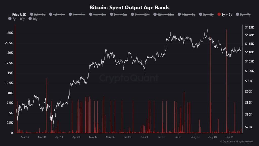 In addition, CryptoQuant analyst JA Maartunn pointed out that these transfers are not isolated cases, as more than 604,000 BTC aged three to five years have moved on-chain since March.